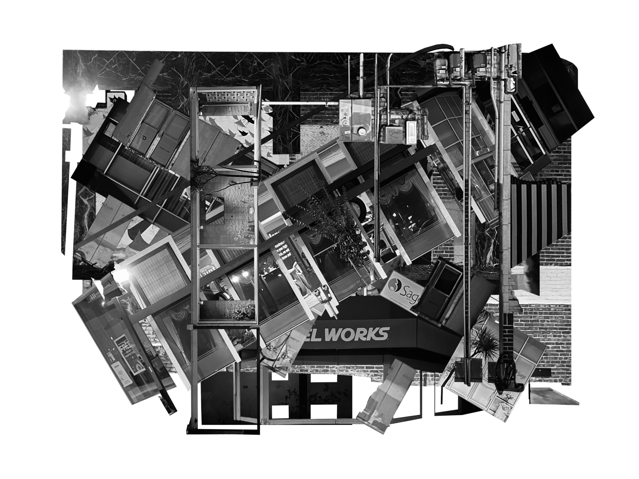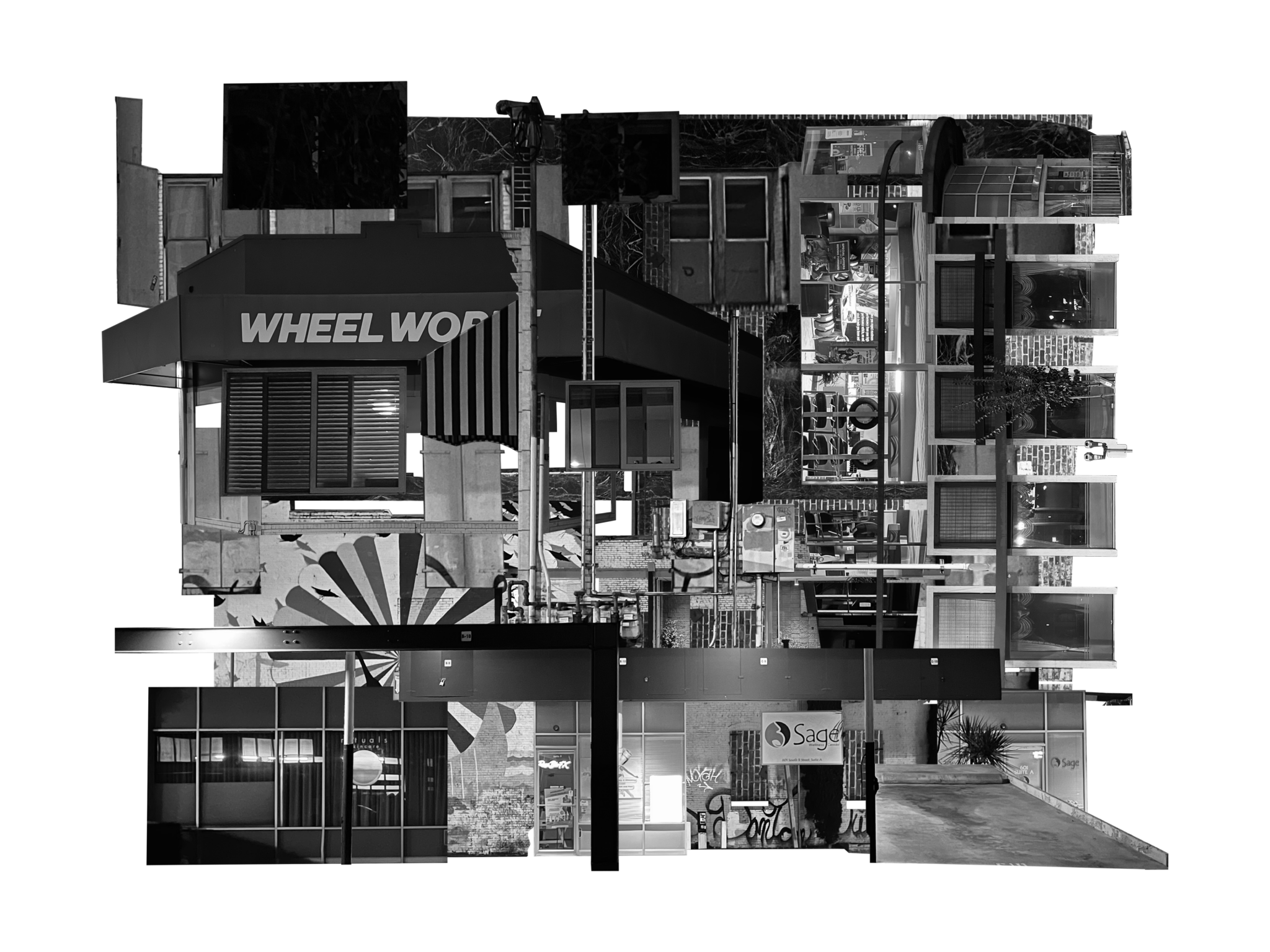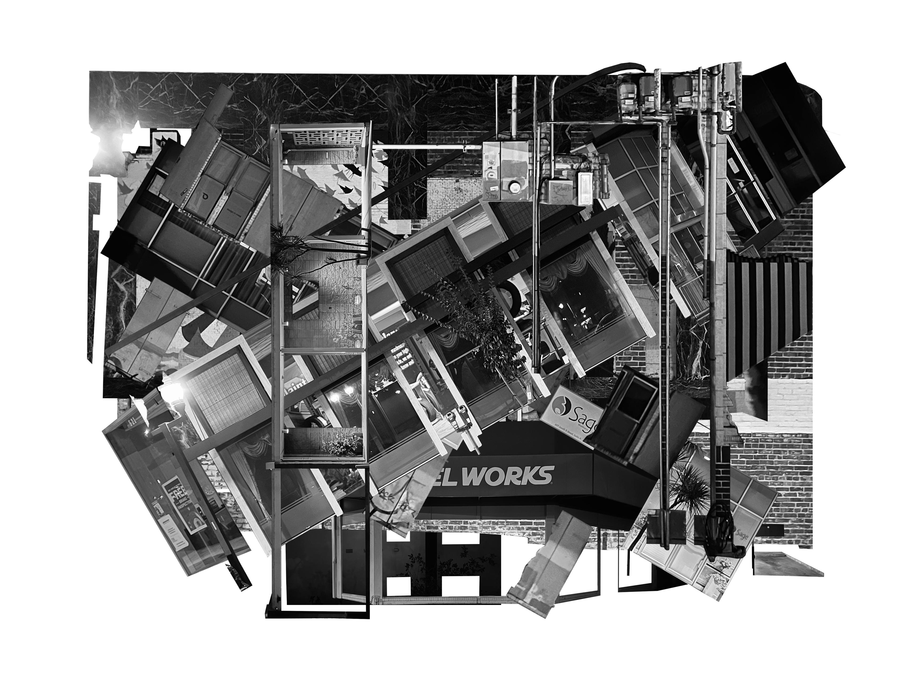 Firstly, I captured images of a specific building type and transformed them into various collage variations. Among these, I selected my favorite and translated it into a line drawing, adding a three-dimensional depth to the composition.